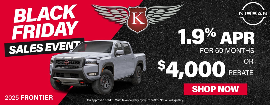 Apply for auto financing at our local Nissan dealer to get started on your car-buying journey. Our experts will pair you with your ideal Rogue lease contract or Frontier loan, so you can enjoy an easy payment plan. Be sure to ask about our new Nissan specials for more ways to save!