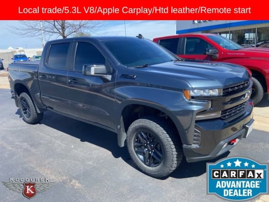 Recent Arrival! New Price! 4WD / 4X4 / AWD / Four Wheel Drive, 10-Way Power Driver Seat w/Lumbar, 12-Volt Rear Auxiliary Power Outlet, 2 USB Ports (First Row), 4-Wheel Disc Brakes, 4.2 Diagonal Color Display Driver Info Center, 6-Speaker Audio System, ABS brakes, Air Conditioning, Alloy wheels, AM/FM radio: SiriusXM, Apple CarPlay/Android Auto, Auto-Locking Rear Differential, Automatic temperature control, Auxiliary External Transmission Oil Cooler, Bluetooth® For Phone, Brake assist, Chevrolet Connected Access Capable, Chevytec Spray-On Black Bedliner, Cloth Rear Seat w/Storage Package, Color-Keyed Carpeting Floor Covering, Compass, Convenience Package w/Buckets Seats, Deep-Tinted Glass, Delay-off headlights, Dual Exhaust w/Polished Outlets, Dual front impact airbags, Dual front side impact airbags, Dual-Zone Automatic Climate Control, Electric Rear-Window Defogger, Electronic Cruise Control, Electronic Stability Control, EZ Lift Power Lock & Release Tailgate, Floor Mounted Center Console, Front anti-roll bar, Front Bucket Seats, Front Center Armrest, Front dual zone A/C, Front fog lights, Front LED Fog Lamps, Front wheel independent suspension, Fully automatic headlights, Heated door mirrors, Heated Driver & Front Outboard Passenger Seats, Heated Steering Wheel, Heavy-Duty Air Filter, High Gloss Black Grille, High Gloss Black Mirror Caps, Hill Descent Control, Hitch Guidance, Illuminated entry, Keyless Open & Start, Lane Change Alert w/Side Blind Zone Alert, Leather Wrapped Steering Wheel, LED Cargo Area Lighting, LED Reflector Headlamps, Low tire pressure warning, Manual Tilt/Telescoping Steering Column, Occupant sensing airbag, Off-Road Suspension w/2 Lift, OnStar & Chevrolet Connected Services Capable, Outside temperature display, Overhead airbag, Overhead console, Panic alarm, Performance Red Recovery Hooks, Perimeter Lighting, Power Door Locks, Power door mirrors, Power driver seat, Power Front Windows w/Driver Express Up/Down, Power Front Windows w/Passenger Express Down, Power Rear Windows w/Express Down, Preferred Equipment Group 2LT, Premium audio system: Chevrolet Infotainment 3, Radio data system, Radio: Chevrolet Infotainment 3 System, Rear Cross Traffic Alert, Rear Dual USB Charging-Only Ports, Rear seat center armrest, Rear step bumper, Rear Vision Camera, Rear Wheelhouse Liners, Rear window defroster, Remote keyless entry, Remote Vehicle Starter System, Safety Package, Security system, SiriusXM Radio, Speed-sensing steering, Standard Tailgate, Steering Wheel Audio Controls, Steering wheel mounted audio controls, Suspension Package, Tachometer, Telescoping steering wheel, Theft Deterrent System (Unauthorized Entry), Traction control, Trailering Package, Ultrasonic Front & Rear Park Assist, Variably intermittent wipers, Wheels: 18 x 8.5 Black Painted Aluminum, Wi-Fi Hot Spot Capable.2022 Chevrolet Silverado 1500 LTD LT Trail BossProudly serving guests in marathon, portage, langlade, oneida, taylor, vilias, wood, clark, lincoln, and waupaca counties. Please call one of our knowledgeable Sales Consultants with any questions you might have, or to verify listed options. Serving guests from Stevens Point, Plover, Wausau, Marathon, Portage, Langlade, Oneida, Taylor, Vilias, Wood, Clark, Lincoln, Waupaca or near me!