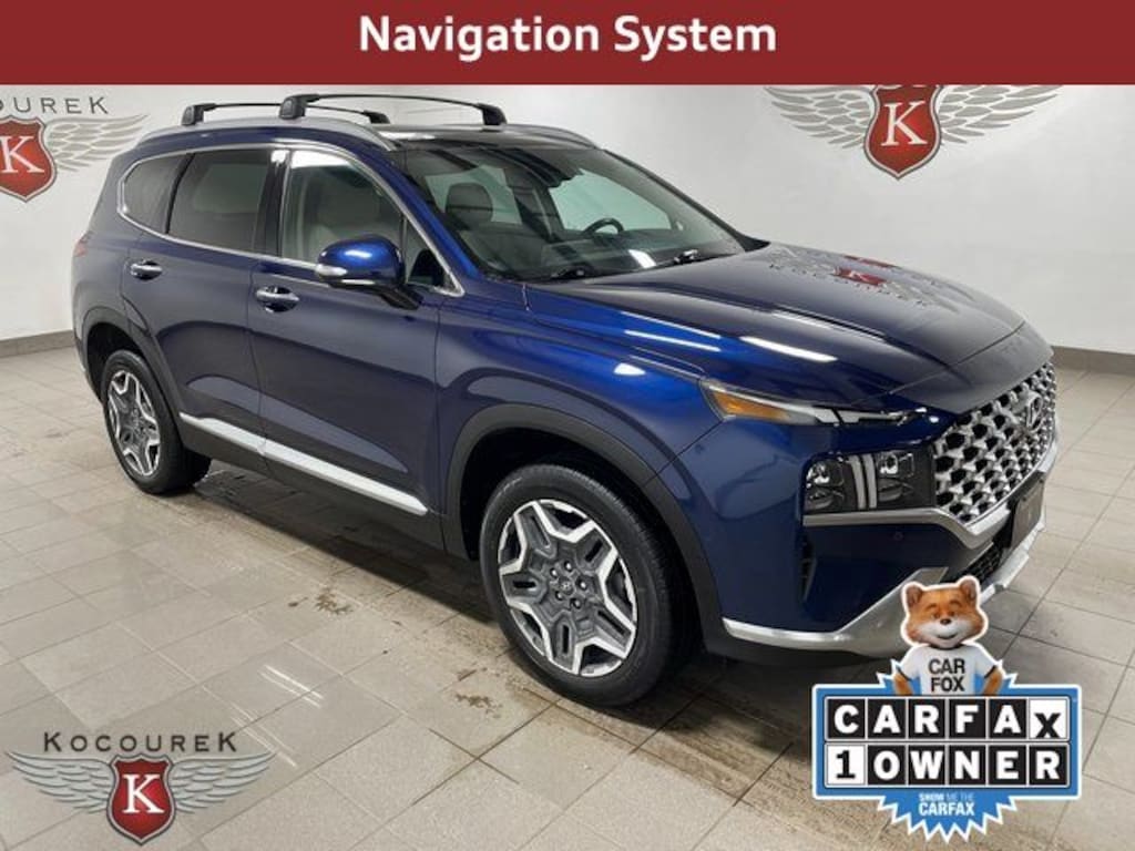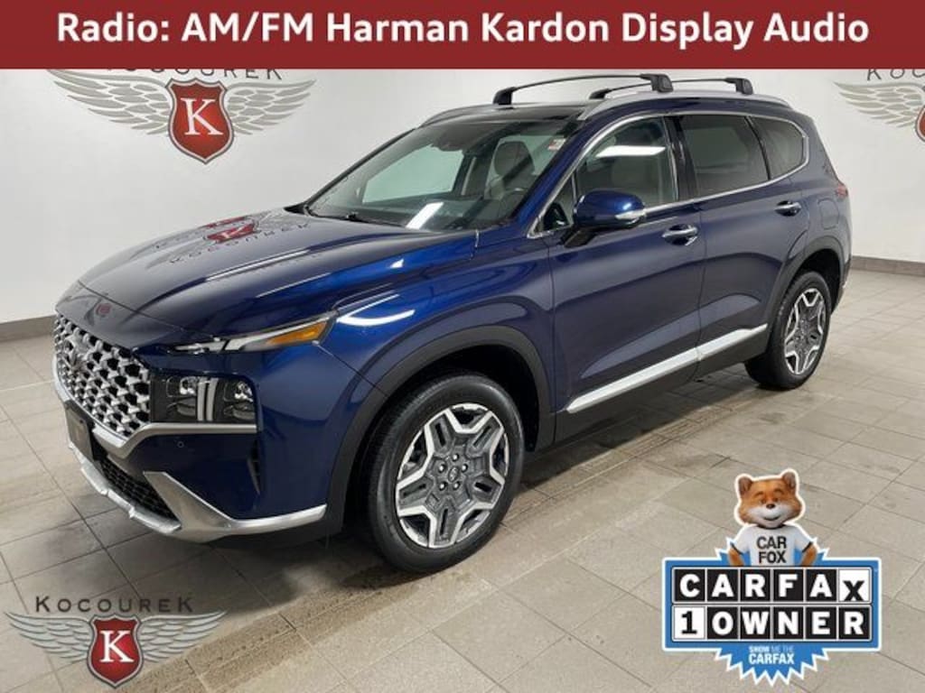 Santa Fe Limited, 4D Sport Utility, 2.5L I4, Shiftronic, AWD, Stormy Sea, Beige Leather, 12 Speakers, Apple CarPlay & Android Auto, Exterior Parking Camera Rear, harman/kardon® Speakers, Heated & Ventilated Front Bucket Seats, Heated front seats, Heated rear seats, Heated steering wheel, Memory seat, Navigation System, Option Group 01, Power driver seat, Power Liftgate, Power moonroof, Power passenger seat, Radio: AM/FM Harman Kardon Display Audio, Rain sensing wipers, Split folding rear seat, Ventilated front seats, Wheels: 19" x 7.5J Alloy, 4-Wheel Disc Brakes, ABS brakes, Air Conditioning, Alloy wheels, AM/FM radio: SiriusXM, Auto High-beam Headlights, Auto-dimming Rear-View mirror, Automatic temperature control, Axle Ratio: 3.316, Brake assist, Bumpers: body-color, Cargo Net, Delay-off headlights, Driver door bin, Driver vanity mirror, Dual front impact airbags, Dual front side impact airbags, Electronic Stability Control, Emergency communication system, First Aid Kit, Four wheel independent suspension, Front anti-roll bar, Front Bucket Seats, Front Center Armrest, Front dual zone A/C, Front reading lights, Fully automatic headlights, Garage door transmitter: HomeLink, Heated door mirrors, Illuminated entry, Leather Seat Trim, Leather steering wheel, Low tire pressure warning, Occupant sensing airbag, Outside temperature display, Overhead airbag, Overhead console, Panic alarm, Passenger door bin, Passenger vanity mirror, Power door mirrors, Power steering, Power windows, Rear anti-roll bar, Rear seat center armrest, Rear window defroster, Rear window wiper, Remote keyless entry, Roof Rack Cross Bars (DISC), Security system, Speed control, Speed-sensing steering, Spoiler, Steering wheel mounted audio controls, Tachometer, Telescoping steering wheel, Tilt steering wheel, Traction control, Trip computer, Turn signal indicator mirrors, Variably intermittent wipers, Santa Fe Limited, 4D Sport Utility, 2.5L I4, Shiftronic, AWD, Stormy Sea, Beige Leather, 12 Speakers, Apple CarPlay & Android Auto, Exterior Parking Camera Rear, harman/kardon® Speakers, Heated & Ventilated Front Bucket Seats, Heated front seats, Heated rear seats, Heated steering wheel, Memory seat, Navigation System, Option Group 01, Power driver seat, Power Liftgate, Power moonroof, Power passenger seat, Radio: AM/FM Harman Kardon Display Audio, Rain sensing wipers, Split folding rear seat, Ventilated front seats, Wheels: 19" x 7.5J Alloy.