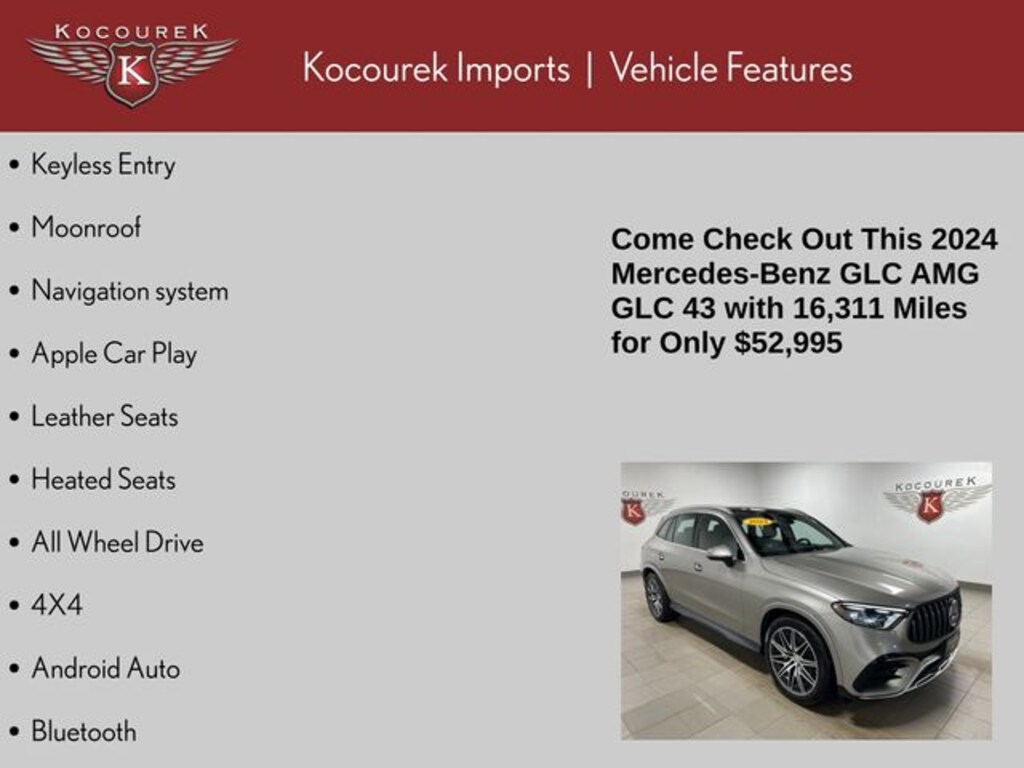 Please call one of our knowledgeable Sales Consultants with any question you might have. Serving guests in Marathon, Portage, Langlade, Oneida, Taylor, Vilias, Wood, Clark, Lincoln, Waupaca or near me! 2024 Mercedes-Benz GLC GLC 43 AMG®
